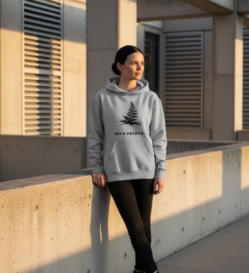 Minimalistická mikina inspirovaná postapokalyptickým románem A pak se zřítilo nebe.