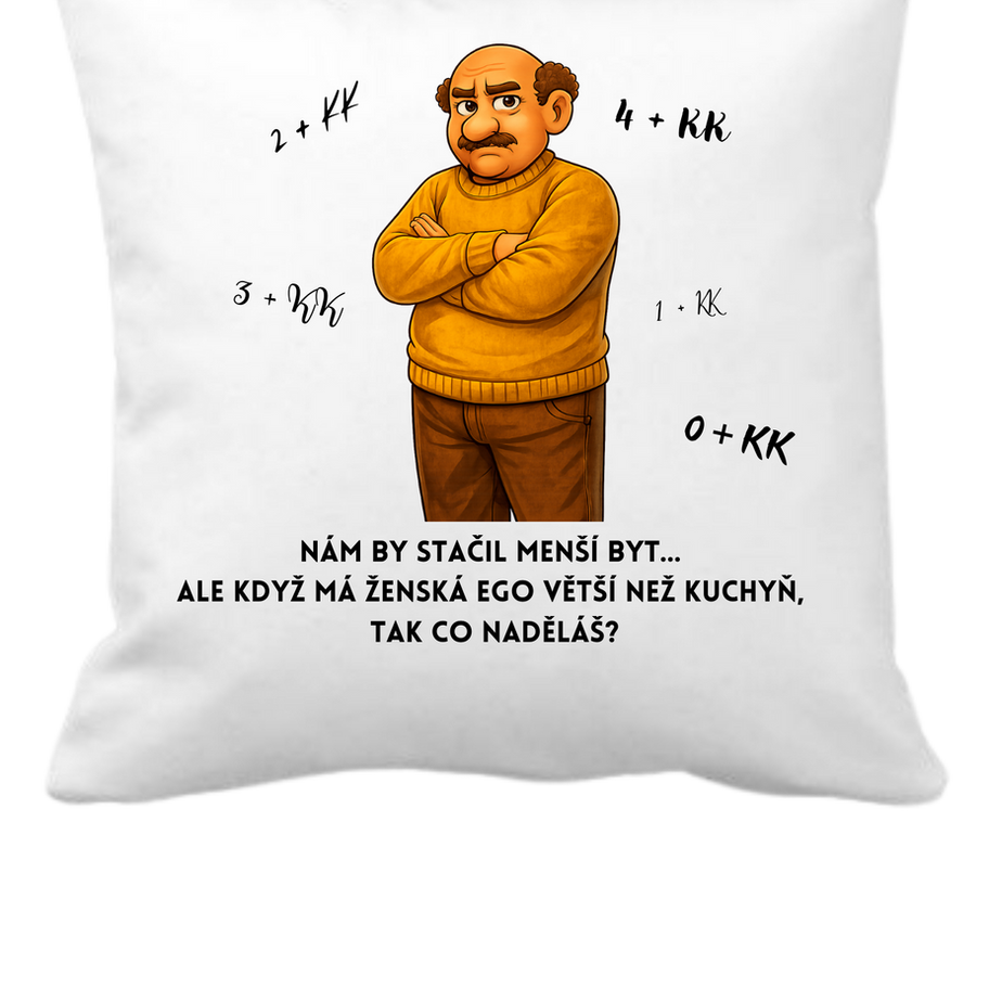 Povlak z kolekce Pytlíkovi zachycuje klasickou domácí matematiku: kolik metrů čtverečních by vlastně stačilo… kdyby se do rovnice nepočítalo ego. A když už se počítá, vychází to vždycky trochu jinak.